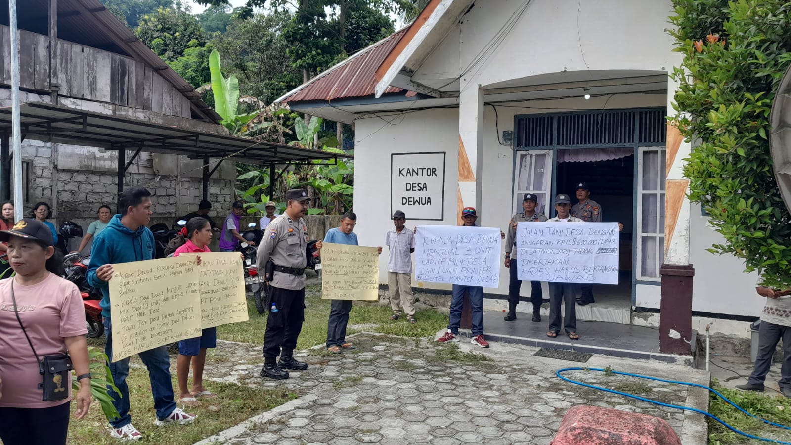 Tak hanya itu, warga juga menuding Kepala Desa Dewua menjual dua unit laptop milik pemerintah dan meminjam dana BUMDes sebesar Rp16 juta yang belum dikembalikan hingga saat ini.